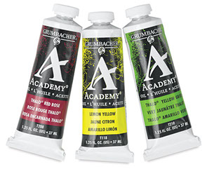 Los Óleos Grumbacher Academy proporcionan una amplia gama de colores tradicionales de óleo para el pintor que exige materiales de buena calidad , pero que también requiere menor precio . Los colores de los óleos Academy incluyen colores de pigmentos originales , así como tonos mixtos. Todos los colores tienen un excelente poder colorante y los blancos no amarillean. Disponible en presentación de 37ml